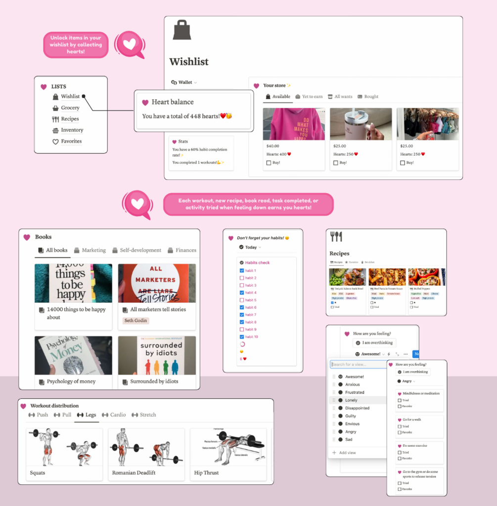 🌟 Merit-Based Wishlist: Earn hearts for achievements, from conquered habits to devoured books, and redeem them for wishlist rewards!